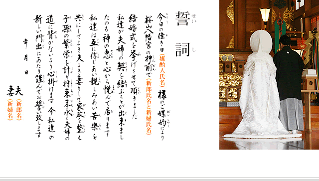 - 誓盃の際の謡曲は当宮の者が謡います。